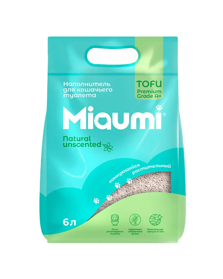 Наполнитель для кошачьего туалета Miaumi TOFU Activated Carbon Unscented Тофу комкующийся растительный с активированным углем 6лКомкуется хорошо,запахи впитывает. Мелковата фракция. Кошка одобрила