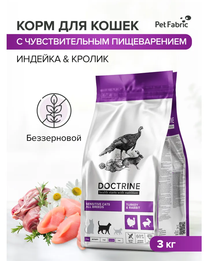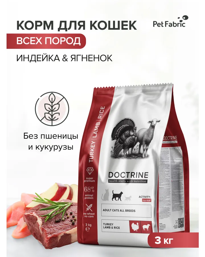 Корм для кошек DOCTRINE сухой с индейкой ягненком и рисом 800 г