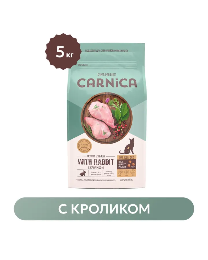 5Корм для кошек Carnica 1.5кг с кроликом для чувствительного пищеварения сухойБерём не первый раз Кот ест с удовольствием