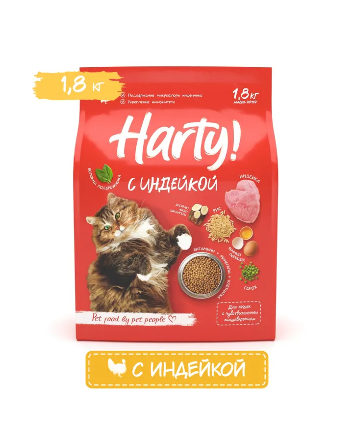 5Корм для кошек Harty 1.8кг для чувствительного пищеварения с лососем сухойКлассный корм. Кошки оценили. Ели за обе щеки.