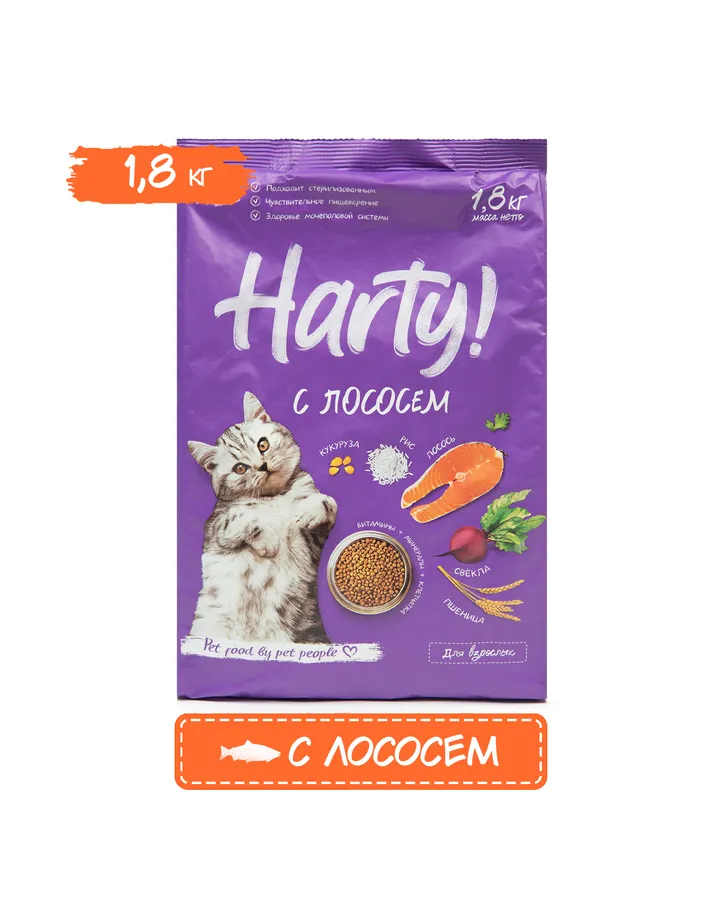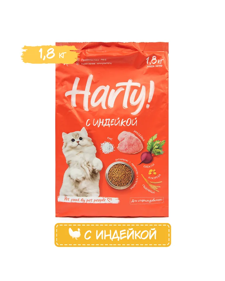 5Корм для кошек Harty 1,8кг с индейкой для взрослых с чувствительным пищеварением полнорационный сухойХороший вариант