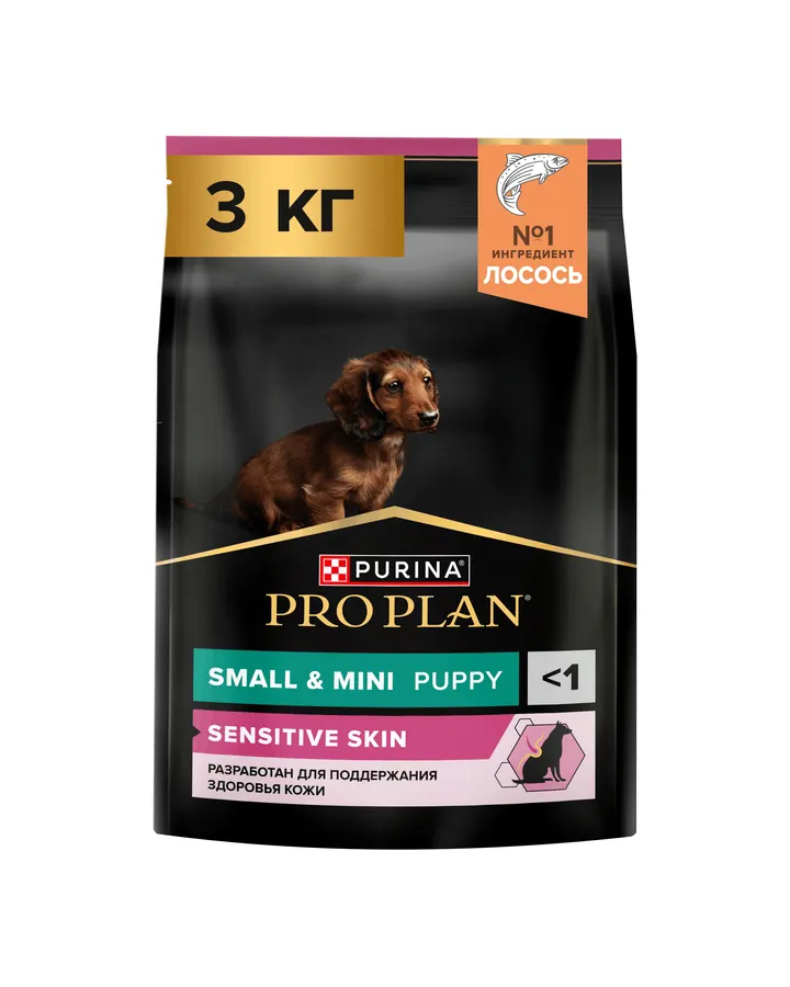 Корм для щенков сухой PRO PLAN Sensitive Skin для мелких пород с чувствительной кожей с лососем 3кгНакопительная скидка