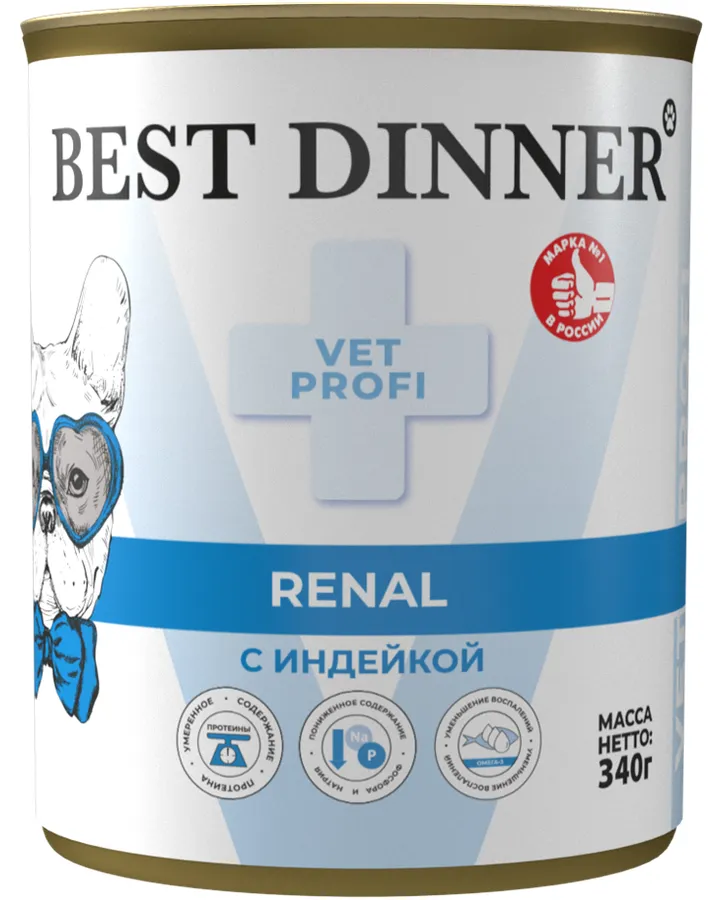 Корм для собак Best Dinner Vet Profi Renal при заболевании почек с индейкой 340г