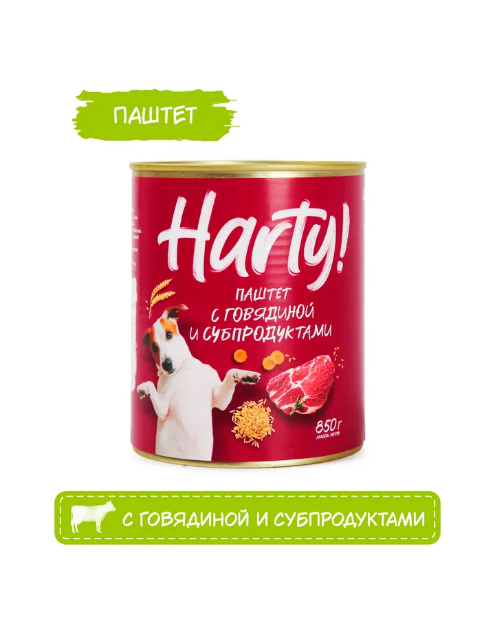 Корм для собак всех пород Harty консервированный полнорационный паштет с говядиной и субпродуктами 850г