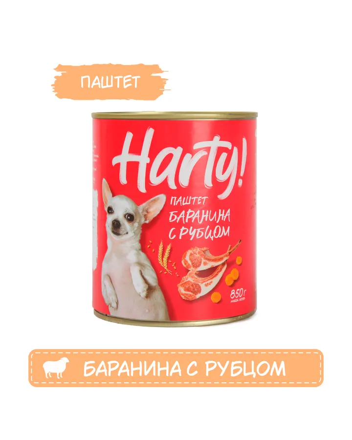 Корм для взрослых собак всех пород Harty консервированный полнорационный паштет из баранины с рубцом 850г