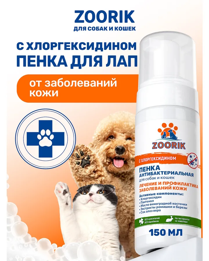 Пенка для мытья лап ZOORIK антибактериальная 150 мл