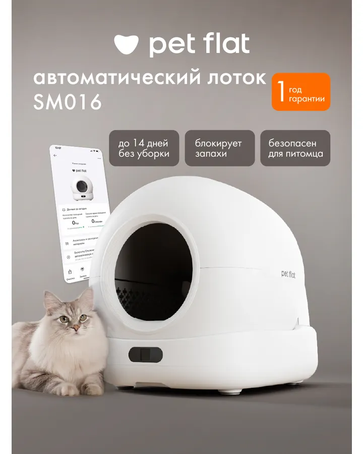 Умный лоток для кошек Pet Flat Автоматический, с приложением