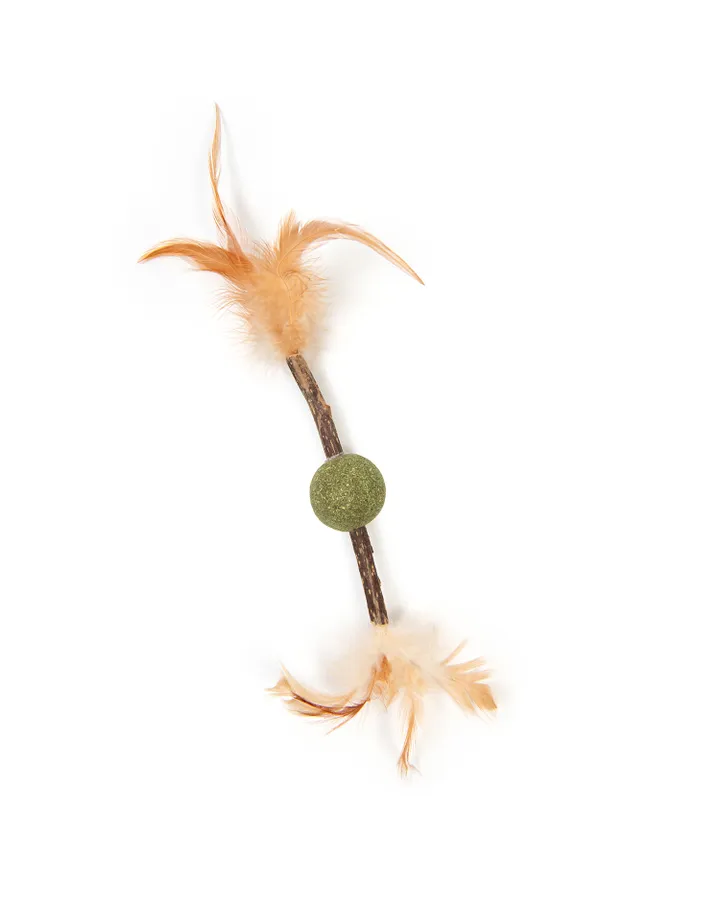Игрушка для кошек Barbaks Пернатый шарик из кошачьей мяты натуральными перьями и палочками мататаби 9см