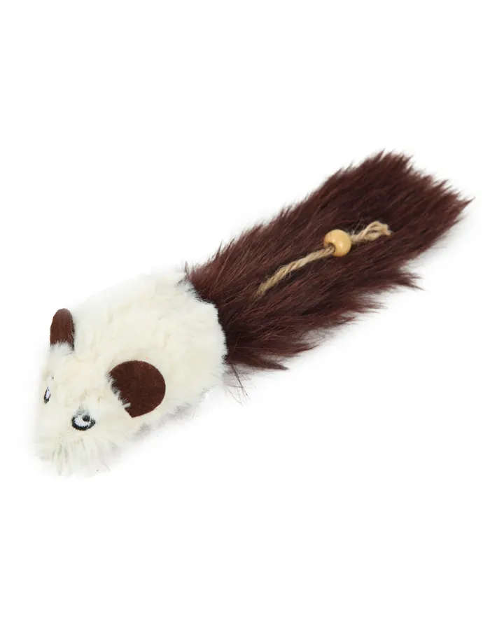 Игрушка для кошек Barbaks Меховая мышь с кошачьей мятой 19*4см Белая-Зеленый нос