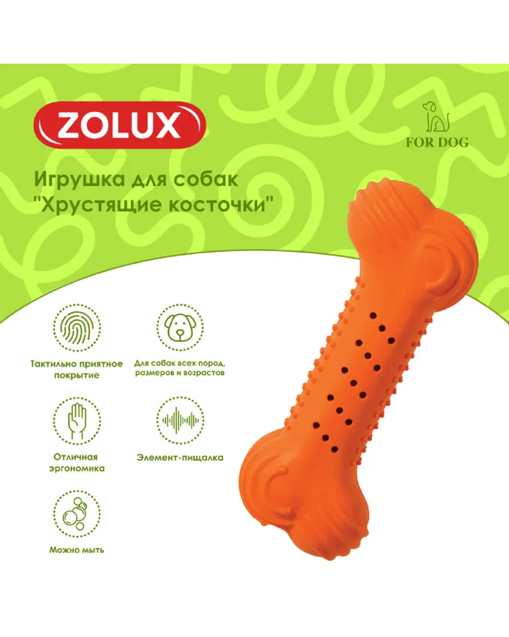Игрушка для собак Zolux Хрустящая кость резиновая 14см в ассортименте