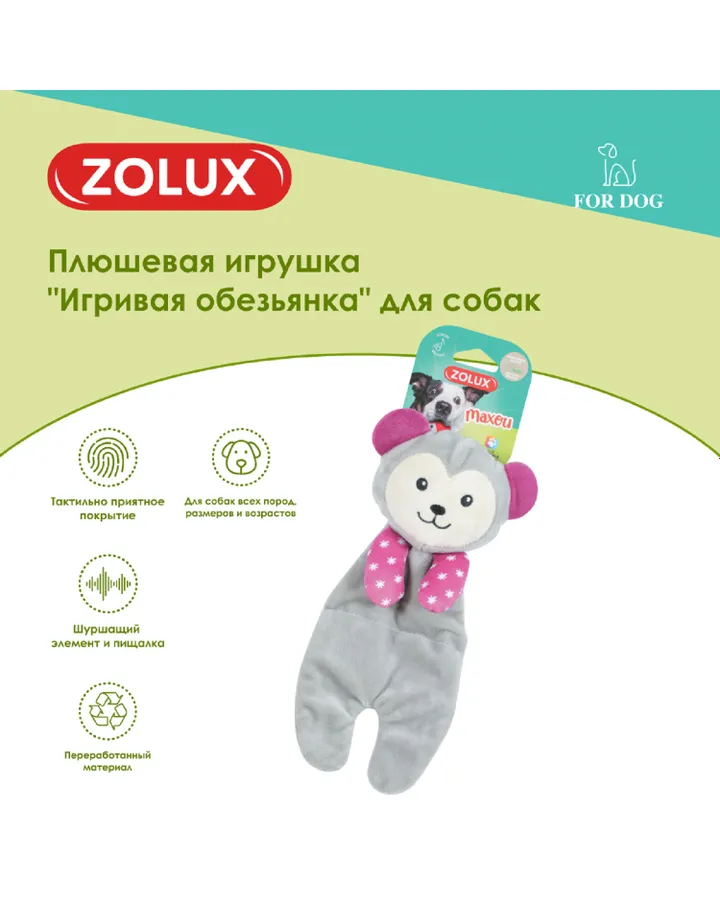 Игрушка для собак Zolux Игривая обезьянка мягкая пищит и шуршит 26см👍