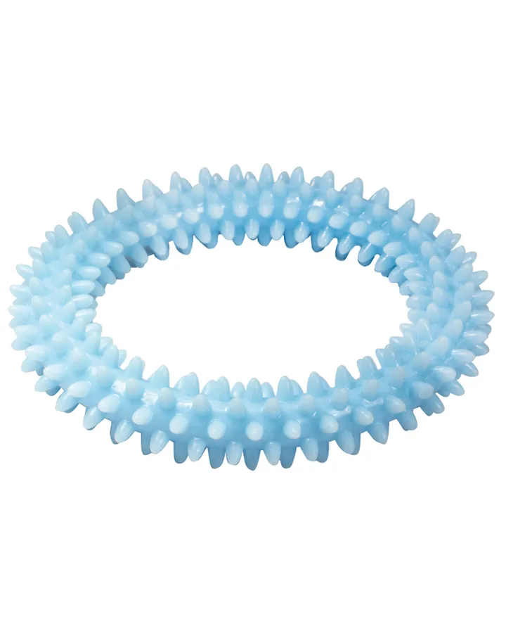 Игрушка хорошая, только если играет хозяин + собака, если играют две собаки, в нашем случае овчарка и стафф, кольца хватает на 5-10 минуты, далее у каждой в зубах по половине)