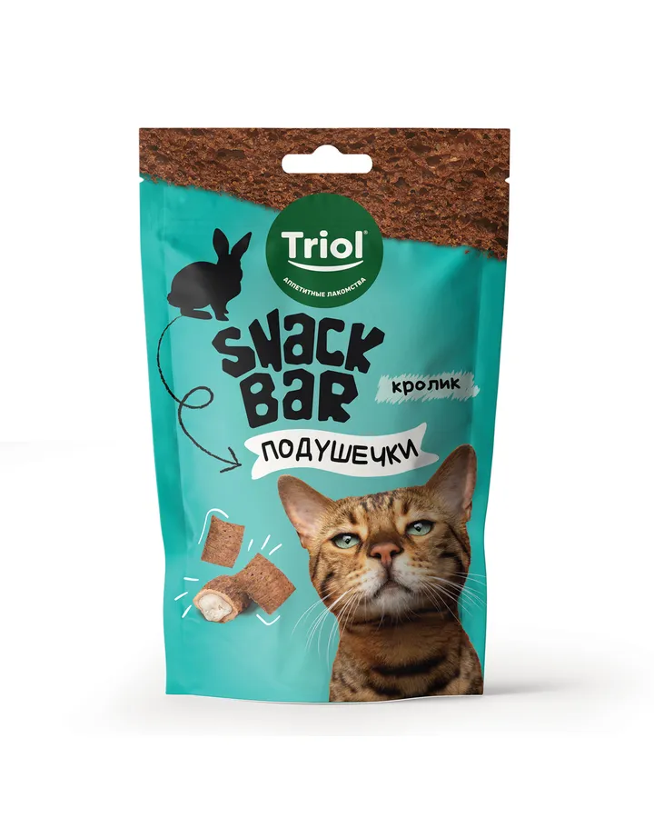 Лакомство для кошек Triol Snack Bar 30г мини-подушечки с начинкой из кролика