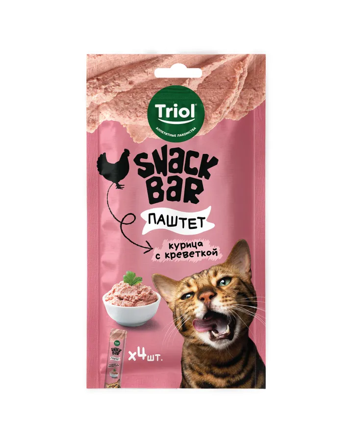 Лакомство для кошек Triol Snack Bar 40г крем из курицы с тунцомВкусняшка для котят, даем своему котику в качестве награды за чистку ушей или стрижку когтей