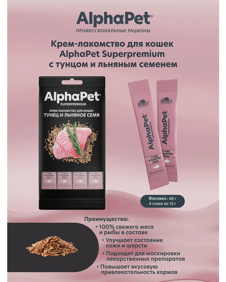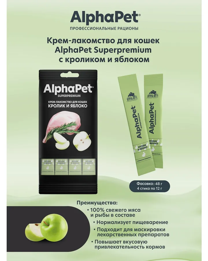 5Лакомство для кошек AlphaPet Superpremium крем с кроликом и яблоком 48гОтличные лакомства моему коту нравятся очень.