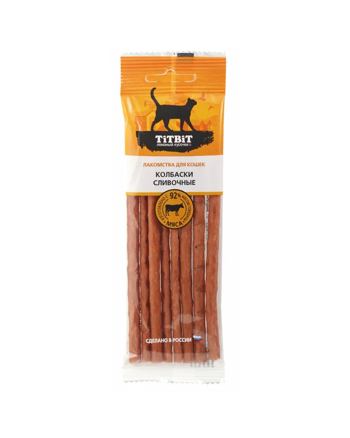 5Лакомство для кошек TITBIT 30г Колбаски сливочныеИ кот и пес оценили 🤣порезали на маленькие колбаски и давали животным с дочей))
