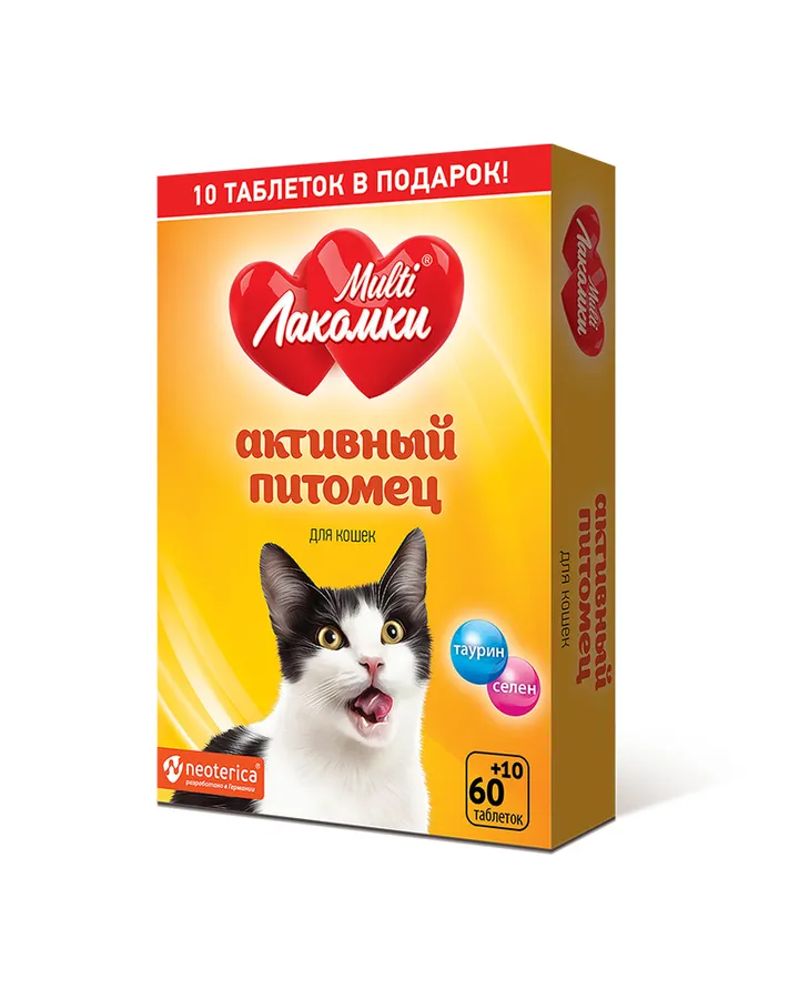 5Лакомство для кошек MultiЛакомки Восхитительная шерсть витаминизированные 70таблетокКот поедает хорошо