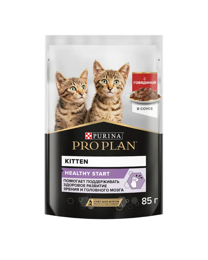 Корм влажный для котят PRO PLAN HEALTHY START 85г с говядиной в соусеНакопительная скидка