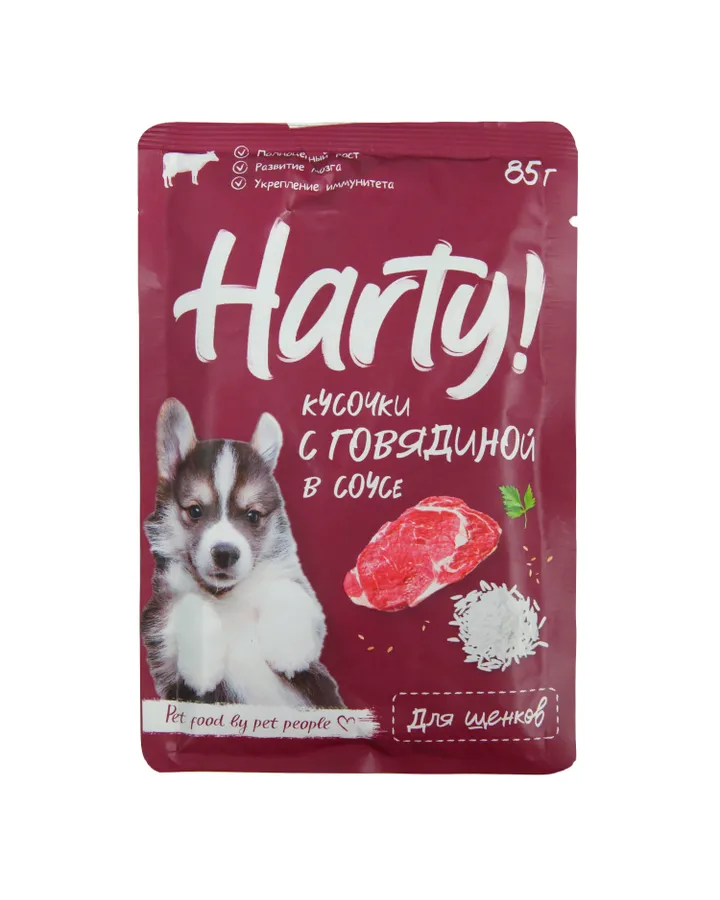Корм для щенков Harty 85г кусочки с индейкой в желеВ целом, корм — хороший вариант для тех, кто ищет сбалансированное и качественное питание для своей собаки. Собака ест с удовольствием, корм привлекает запахом. Хорошо усваивается.