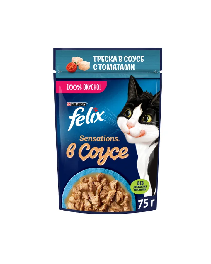 Корм для кошек Felix 75г Sensations для взрослых кошек с лососем и треской желе