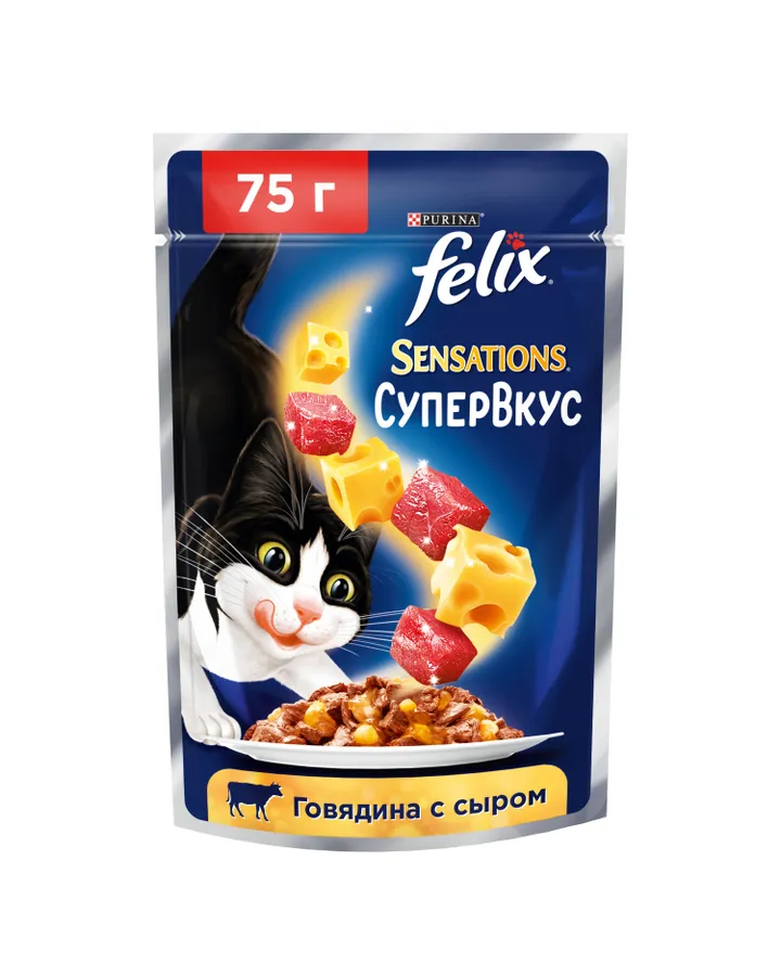Корм для кошек Felix 75г Sensations для взрослых индейка-бекон соус