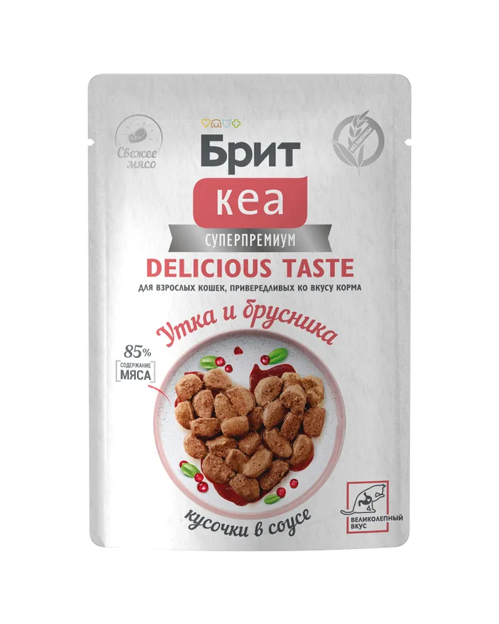 Корм для кошек Brit Кеа 85г привередливых утка и брусника соус пауч