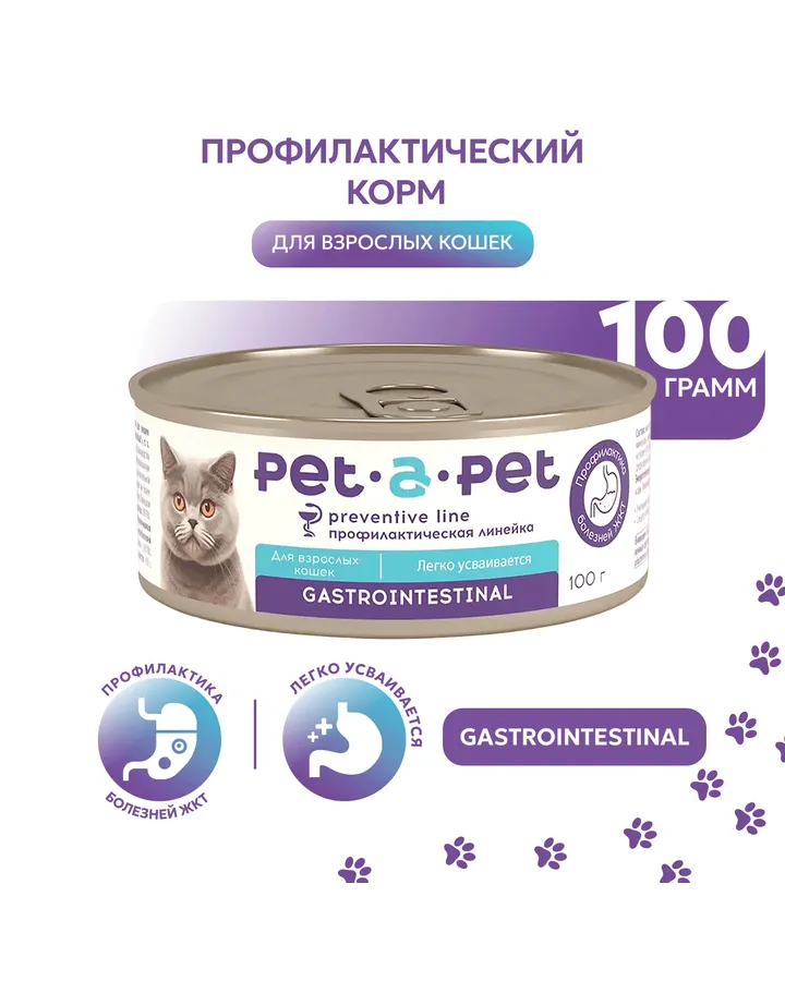 Корм для кошек Pet-a-Pet 100г диетический профилактика болезней ЖКТ GastrointestinalНакопительная скидка