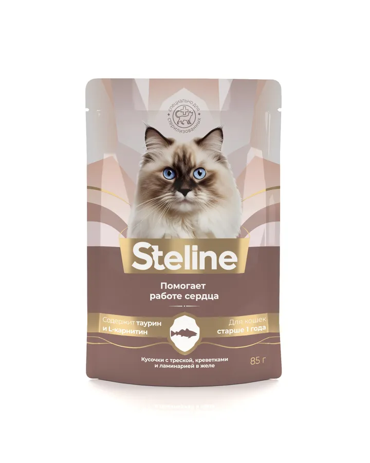 Корм для кошек Steline 85г для стерилизованных лосось-сливки в соусеЛюбимый корм кисулей