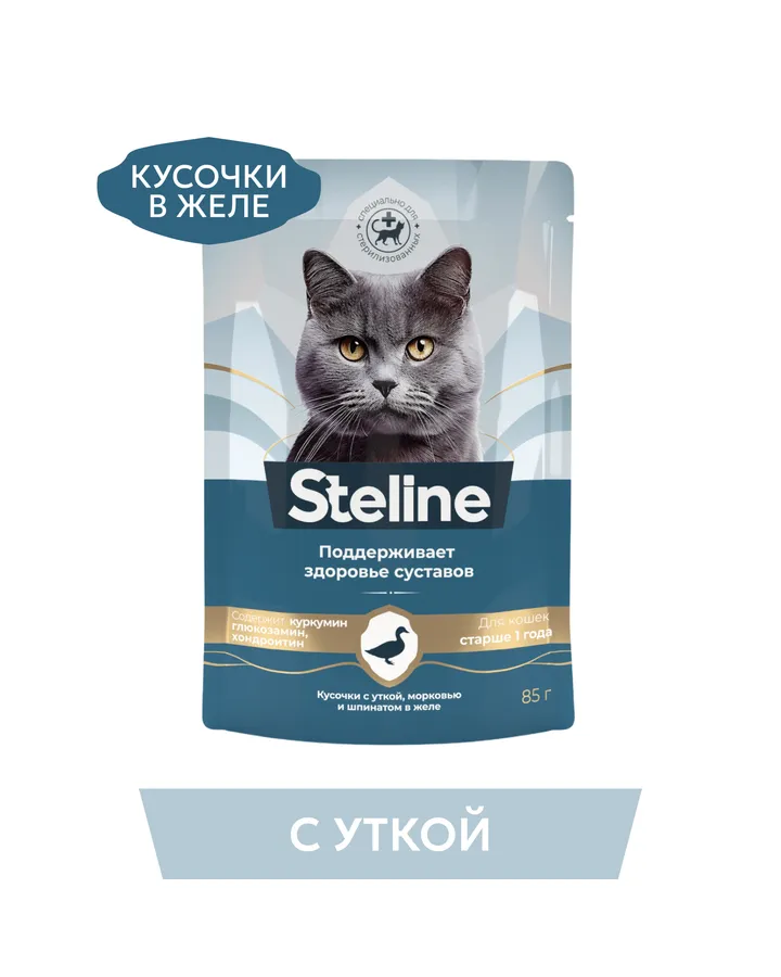 Steline — это продуманная система с научным подходом. Каждый корм представлен уникальным вкусом с добавлением специальных компонентов, которые помогают решать конкретную проблему: