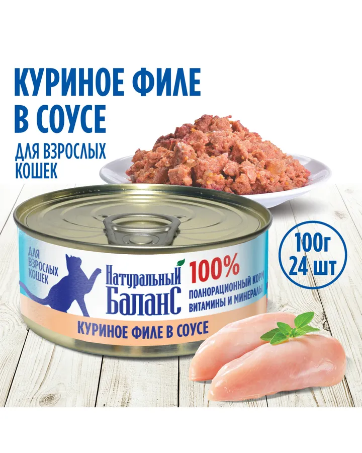 Влажный корм для кошек Натуральный Баланс куриное филе 100г х 24шт