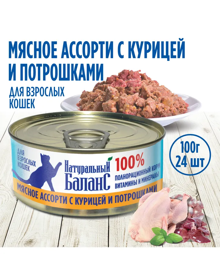 Влажный корм для кошек Натуральный Баланс с курицей и потрошками 100г х 24шт