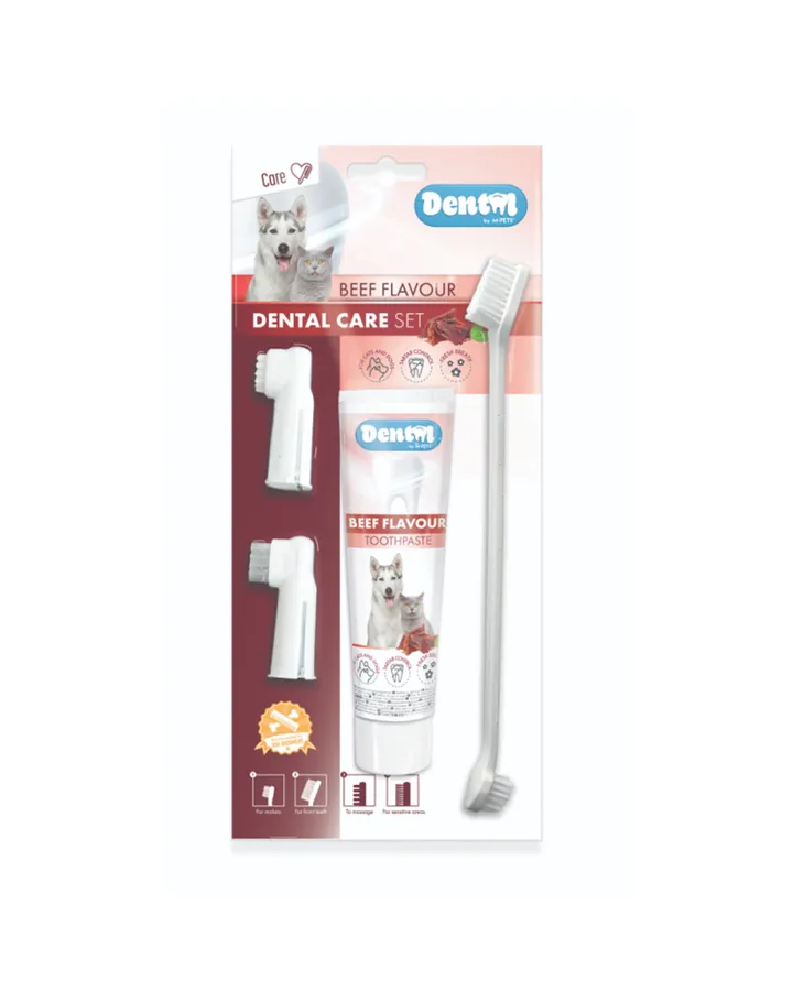 Набор для ухода за зубами собак и кошек M-PETS с говядиной паста 100мл щётка напальчники