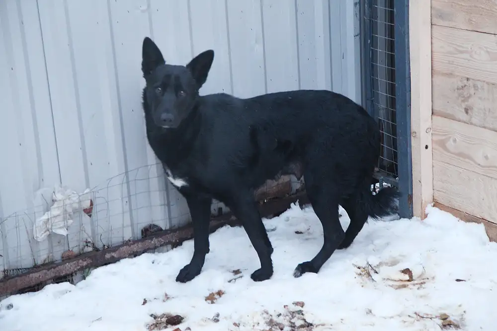 Она не агрессивная, но за себя постоять может. Жила черная красавица у Третьяковки в заброшенном здании. Гала была беременна, ловец приехала, чтобы забрать ее на стерилизацию. Вместе с ней там жил старенький пес Третьяк, который к ней очень был привязан. Мы не решились их разлучать, и в итоге, они оба отправились жить к нам в деревню.