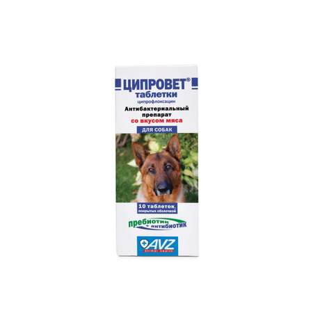Цена Препарат антибактериальный для собак АВЗ крупных и средних пород Ципровет 10таблеток - 262 ₽.