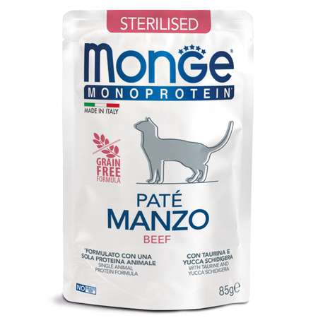 Корм для кошек Monge Monoprotein для стерилизованных говядина пауч 85г MONGE