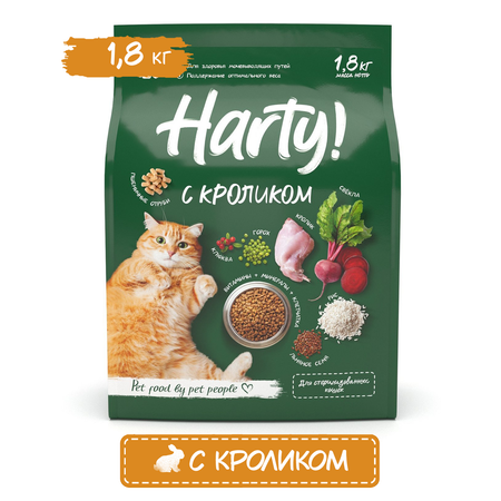 Цена Корм для кошек Harty 1,8кг с кроликом для взрослых стерилизованных полнорационный сухой - 764 ₽.