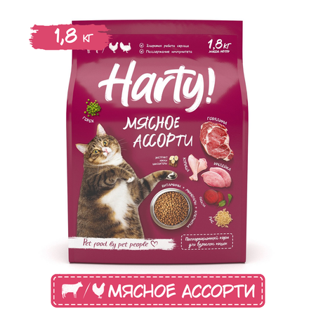 Цена Корм для кошек Harty 1,8кг Мясное ассорти для взрослых полнорационный сухой - 764 ₽.