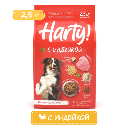 Корм для собак Harty 2,5кг с индейкой для взрослых всех пород с чувствительным пищеварением полнорационный сухой