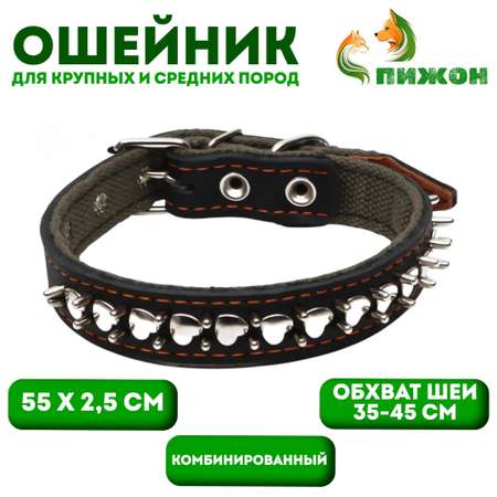 Ошейник Пижон кожа и брезент Ёж 55 см чёрный
