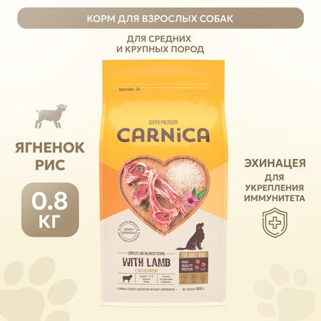 Корм для собак Carnica 0.8кг ягнёнок-рис для средних и крупных пород сухой