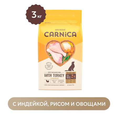 Корм для собак Carnica 3кг индейка-рис с овощами для средних и крупных пород