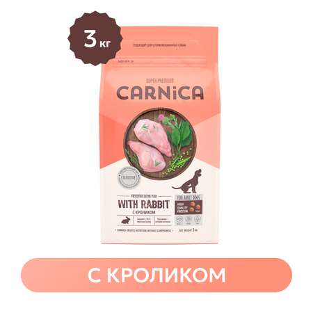 Цена Корм для собак Carnica 3кг с кроликом для чувствительного пищеварения для средних и крупных пород сухой - 3149 ₽.