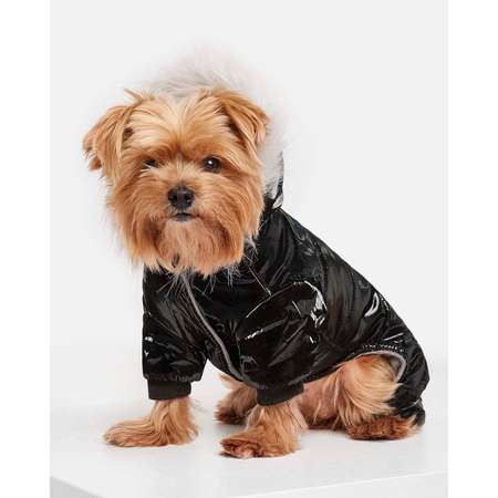 Утеплённый лаковый комбинезон для собак Зоозавр подходит для небольших пород (Пудель, Померанский Шпиц, Чихуахуа и др.).
