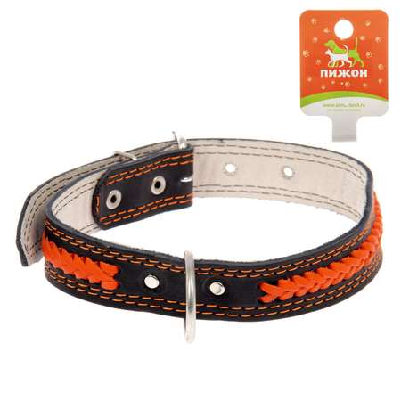 Цена Ошейник Пижон кожаный двухслойный Коса 72х3.6 см ОШ 45-60 см микс - 554 ₽.