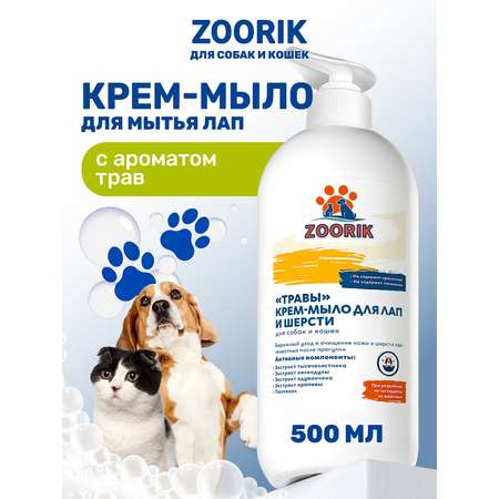 Цена Крем-мыло для лап и шерсти ZOORIK травы 500 мл - 279 ₽.