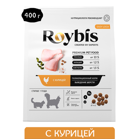 Корм для кошек Roybis 0.4кг для взрослых домашних пород с курицей сухой