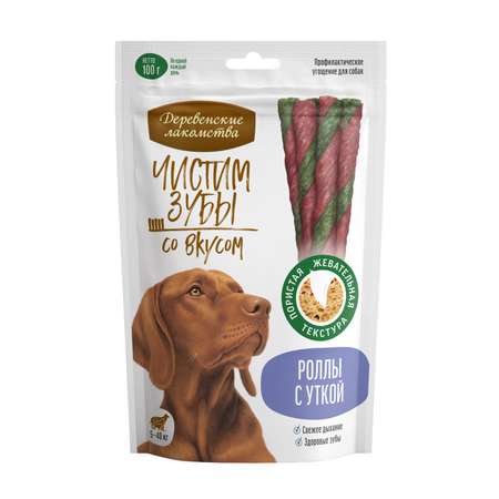 Цена Лакомство для собак Деревенские лакомства 100г Чистим зубы Роллы с уткой - 256 ₽.