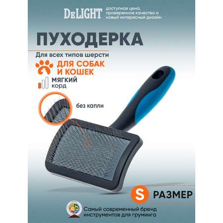 Пуходёрка для животных DeLIGHT пластик мягкий корд малая 36821S