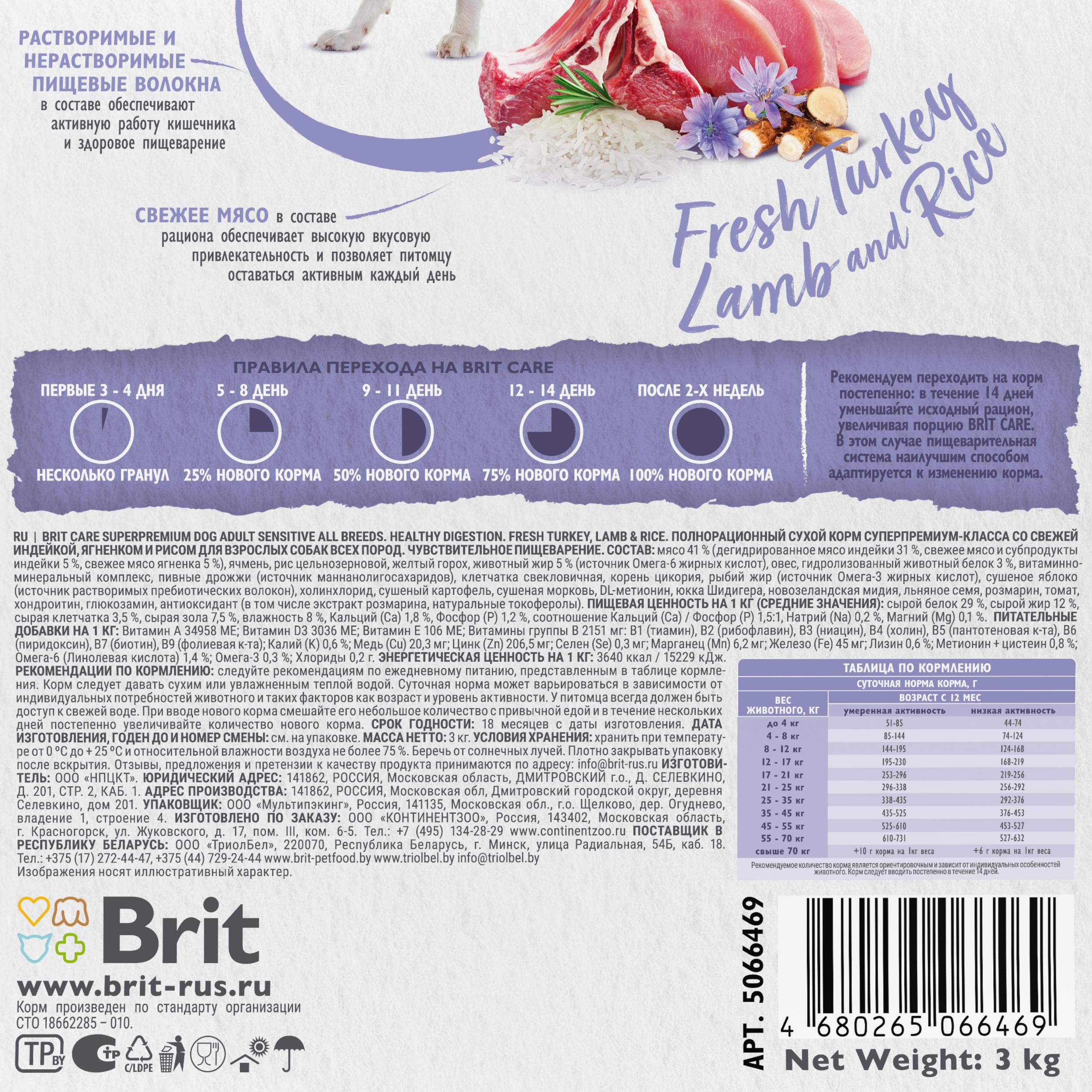Корм для собак Brit Care 3кг взрослых всех пород с индейкой и ягненком