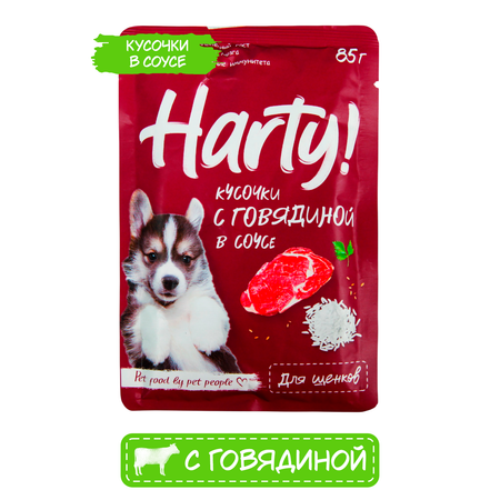 Корм для щенков Harty 85г кусочки с говядиной в соусе